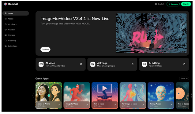 DomoAI is the all-in-one AI animation studio for video generation, image animation, photo editing, talking avatars, style transfer, and 4K upscaling. One platform handles your entire creative workflow—from generating and editing source images, to generating controlled video with Frames to Video, to upscaling your final output to 4K.