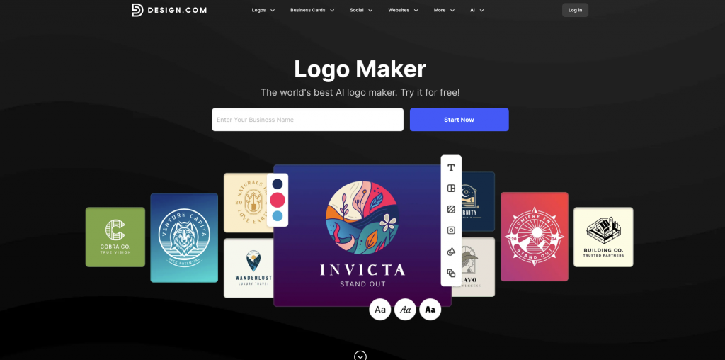 - Advanced AI design tools, including a logo generator, a website builder, and a business card creator