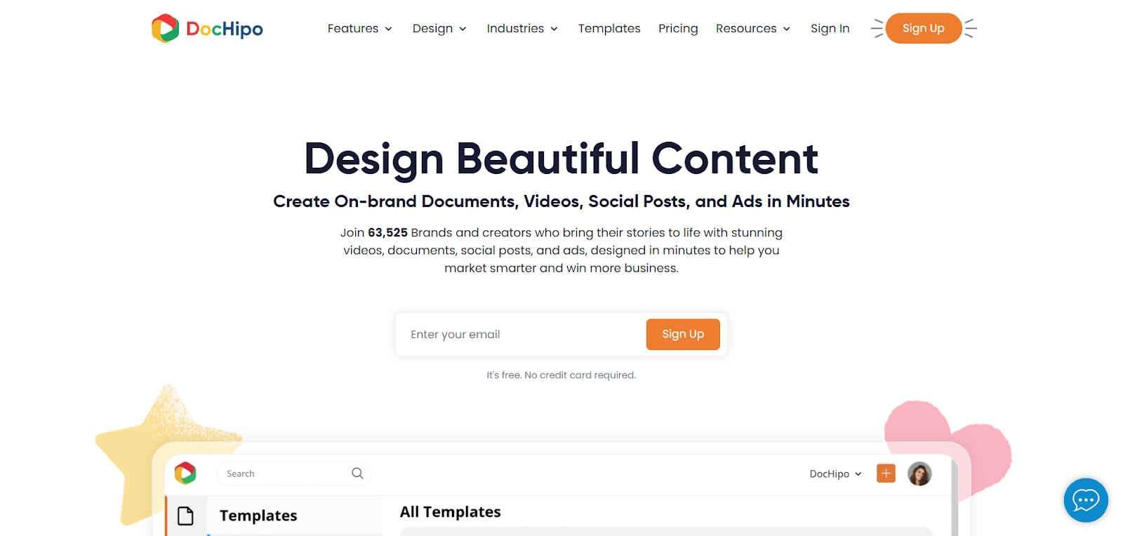 DocHipo is a simple yet powerful design platform that enables you to create on-brand documents, social media posts, videos, and ad graphics in minutes. It offers AI-powered capabilities to speed up marketing content and visual design.