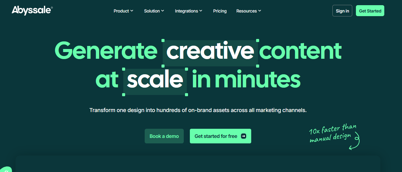 Whether you need static banners, HTML5 animations, or Print-ready PDFs, Abyssale handles it all from a single “Smart Template.” It is the ideal infrastructure for teams needing to scale production without sacrificing brand consistency or design quality.