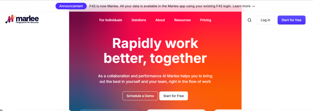Marlee is an AI platform designed to help businesses build high-performing, deeply connected teams. Unlike traditional productivity tools, Marlee focuses on people — offering personalized coaching that improves communication, collaboration, and goal alignment across teams. It provides insights into individual and team work styles, helping leaders understand what drives engagement and performance. With features like smart AI prompts, personalized development plans, and team boards that visualize growth, Marlee empowers organizations to nurture a culture of continuous improvement and inclusivity.