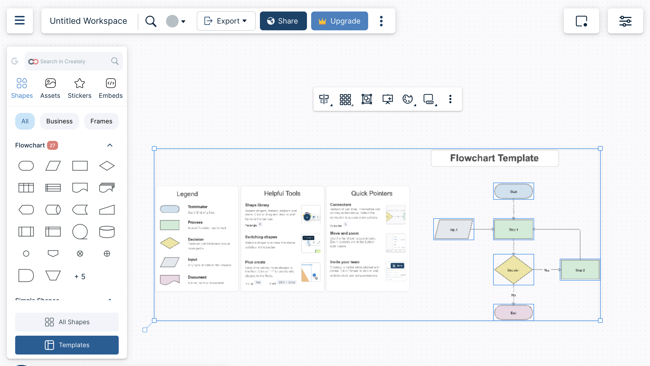 - Automatic layout tool: If your flowchart gets messy, you can use the “arrange” menu to automatically re-center and space your shapes in one click.