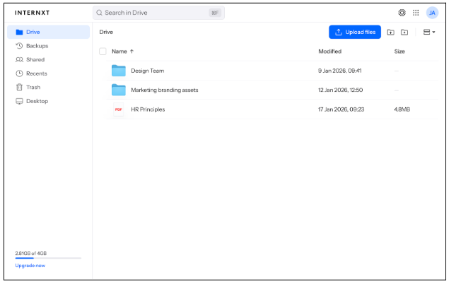 Pricing: Internxt offers a 1GB free plan for individual use. Business plans start at $3.49/month for 200GB per user and scale to $9.99/month for 2TB per user, with centralized billing and admin controls. Unlike collaboration platforms where the provider holds encryption keys and can access shared files, Internxt uses client-side encryption—meaning your team’s confidential client data, case files, or Protected Health Information (PHI) remains private even from Internxt itself. This architecture makes Internxt ideal for businesses with compliance requirements: HIPAA-compliant with BAA availability for healthcare organizations, ISO 27001:2022 certified for enterprise security standards, and independently audited by Securitum (2024). For businesses where data privacy isn’t just preference but legal requirement, Internxt provides secure collaboration without exposing sensitive information to the storage provider.