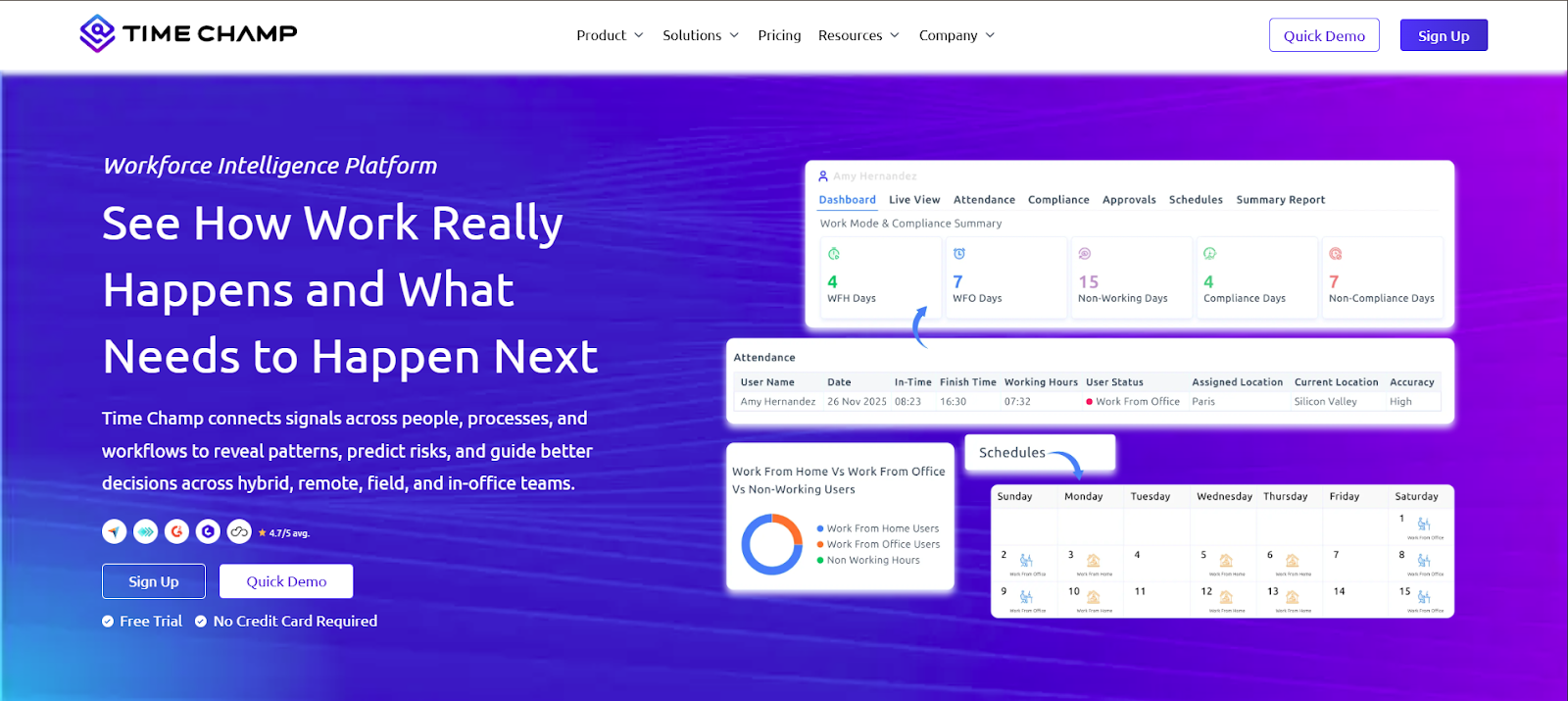 Features: Workforce Analytics, Automatic time tracking, Productivity monitoring, Attendance & leave management, Field Employee Management, Automated Timesheets, and more.