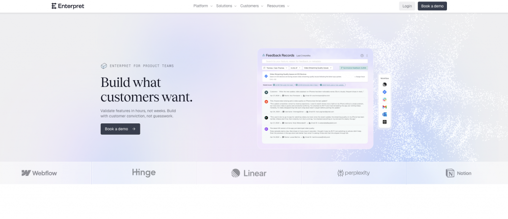 Enterpret is a customer insights platform that helps teams make sense of unstructured feedback from multiple sources, including Discord. By analyzing messages and discussions within your servers, Enterpret automatically detects recurring themes, sentiment shifts, and emerging topics, turning day-to-day conversations into actionable insights.