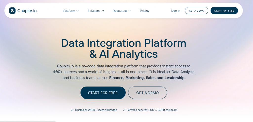 Coupler.io is a reporting automation platform that turns complex data into insightful reports. Without any coding, you can bring marketing, sales, and finance data to your data warehouses, BI tools, and spreadsheets. Coupler.io allows you to collect, organize, and visualize data to make data-driven decisions. Over 100 pre-built and automated reporting dashboard examples from Coupler.io’s gallery will help you get started.
