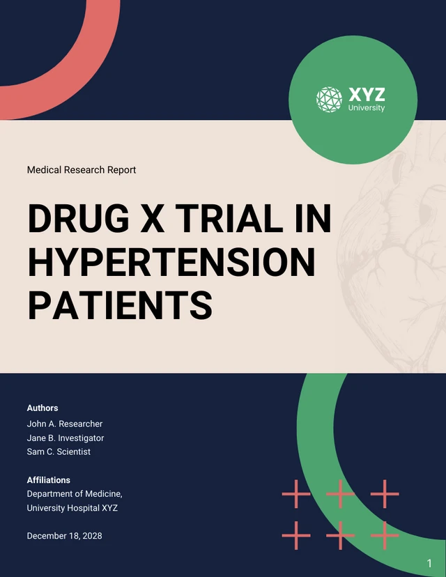 While text-only research report formats can work, they can get pretty dense, leading to an overload of information. A better way to create research could be to use a pre-designed visual research report template, such as the medical research report template by Venngage shared below.